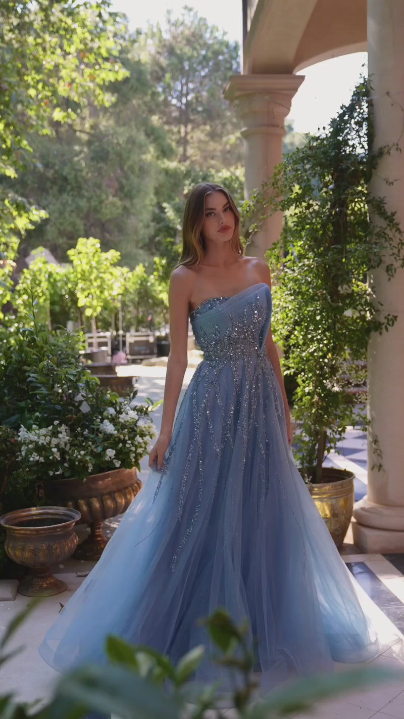 Andrea & Leo A1361 Beaded Light Blue Gown w/ Removable Skirt