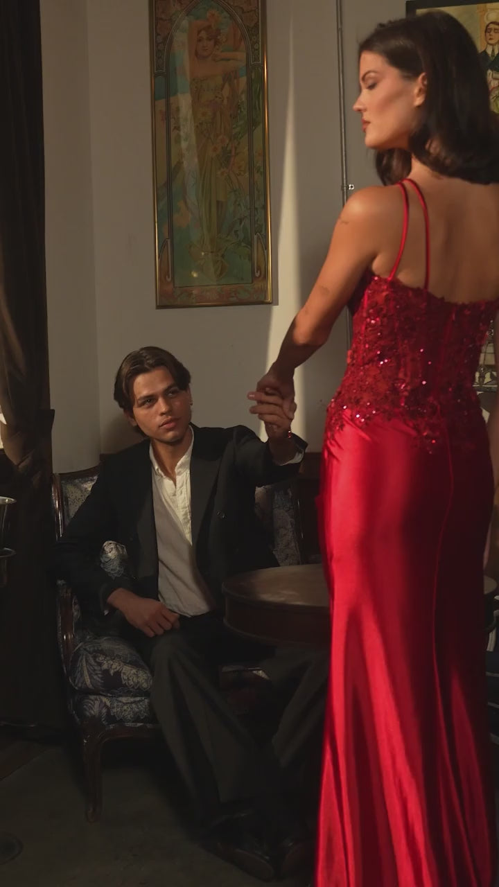 Cinderella Divine CD235 Velvet Corset Dress with High Leg Slit (Sizes 4 - 16)