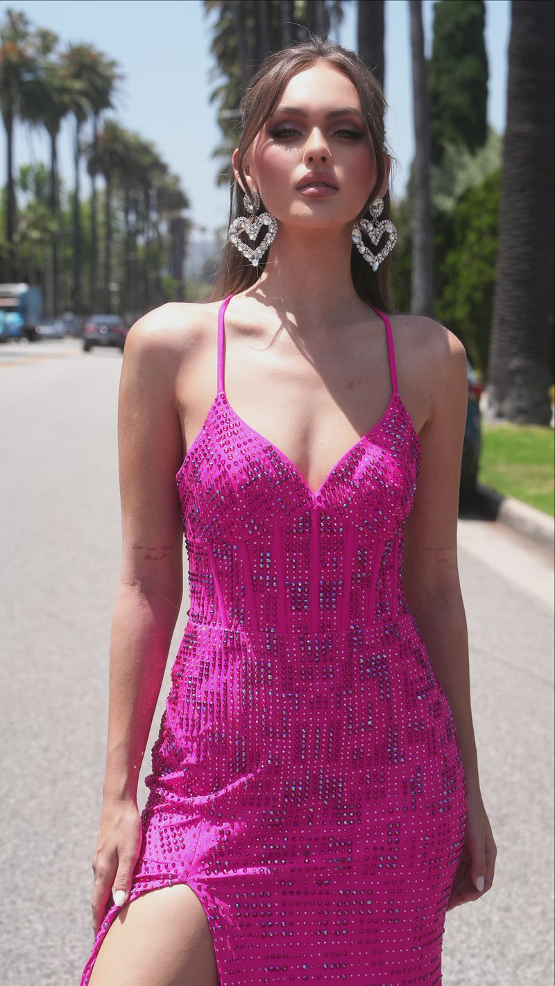 PORTIA & SCARLETT PS25243 Sparkle Pattern Slit Leg Dress