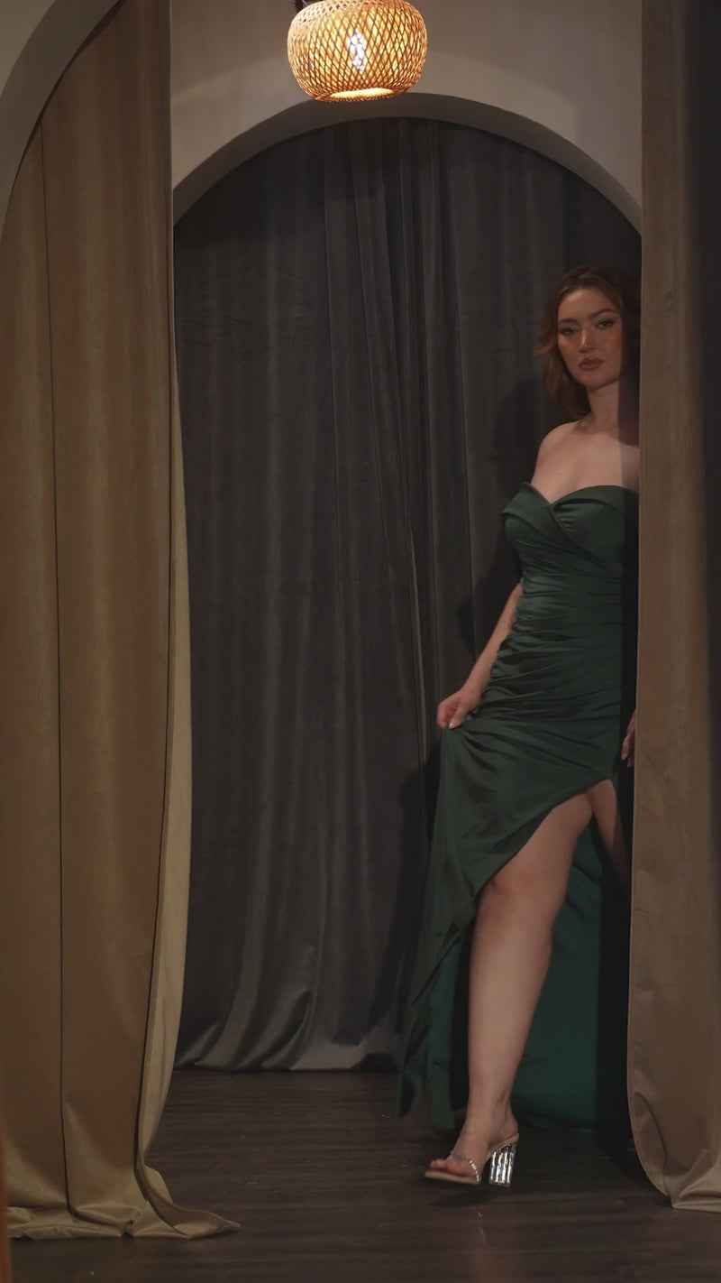 Cinderella Divine CH198 Ruched Sequin Slit Leg Dress