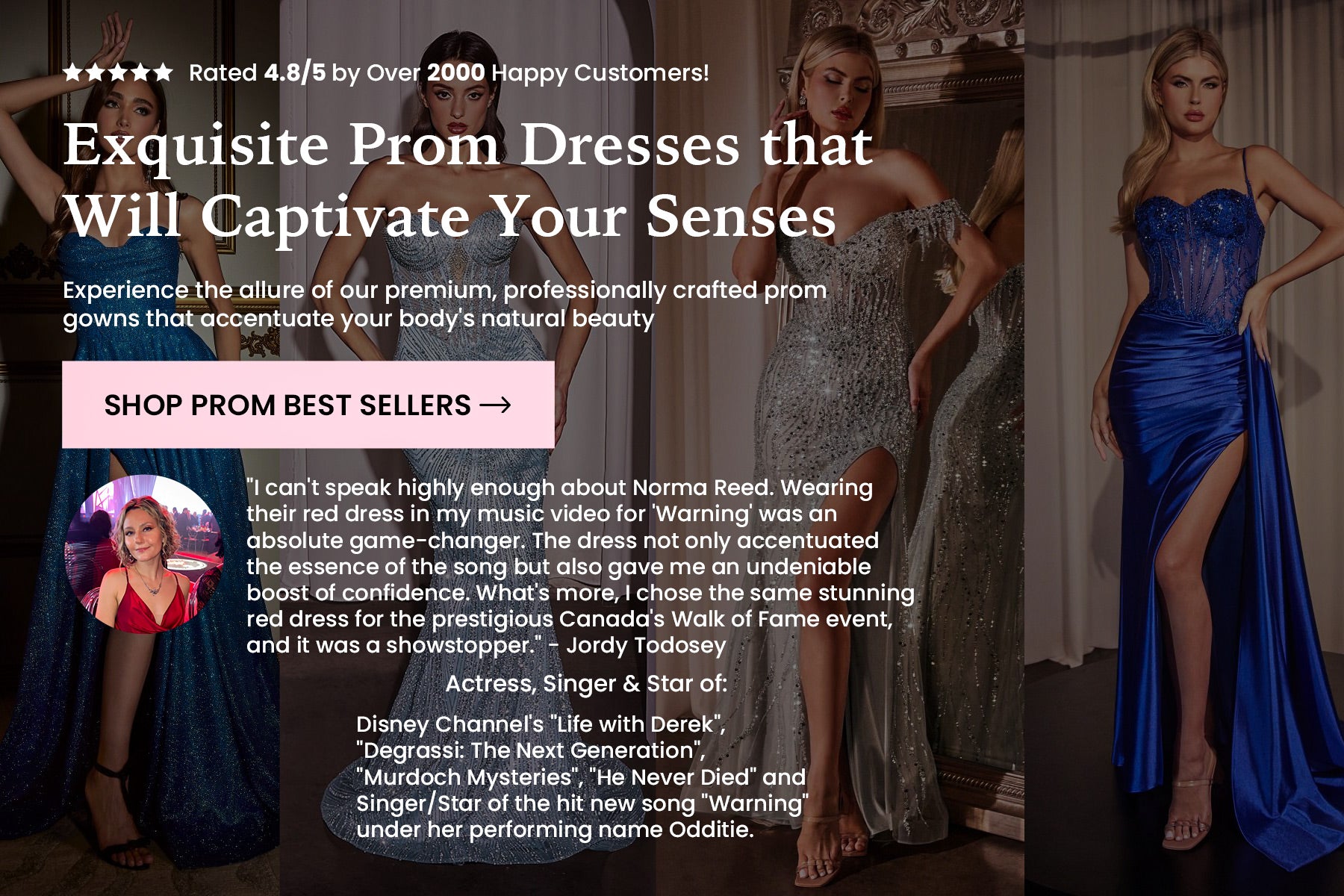 "I can't speak highly enough about Norma Reed. Wearing their red dress in my music video for 'Warning' was an absolute game-changer. The dress not only accentuated the essence of the song but also gave me an undeniable boost of confidence. What's more, I chose the same stunning red dress for the prestigious Canada's Walk of Fame event, and it was a showstopper...Thank you, Norma Reed, for not only providing exceptional clothing but for being a part of two memorable moments in my career. Your dresses are not just beautiful; they empower individuals to shine their brightest."