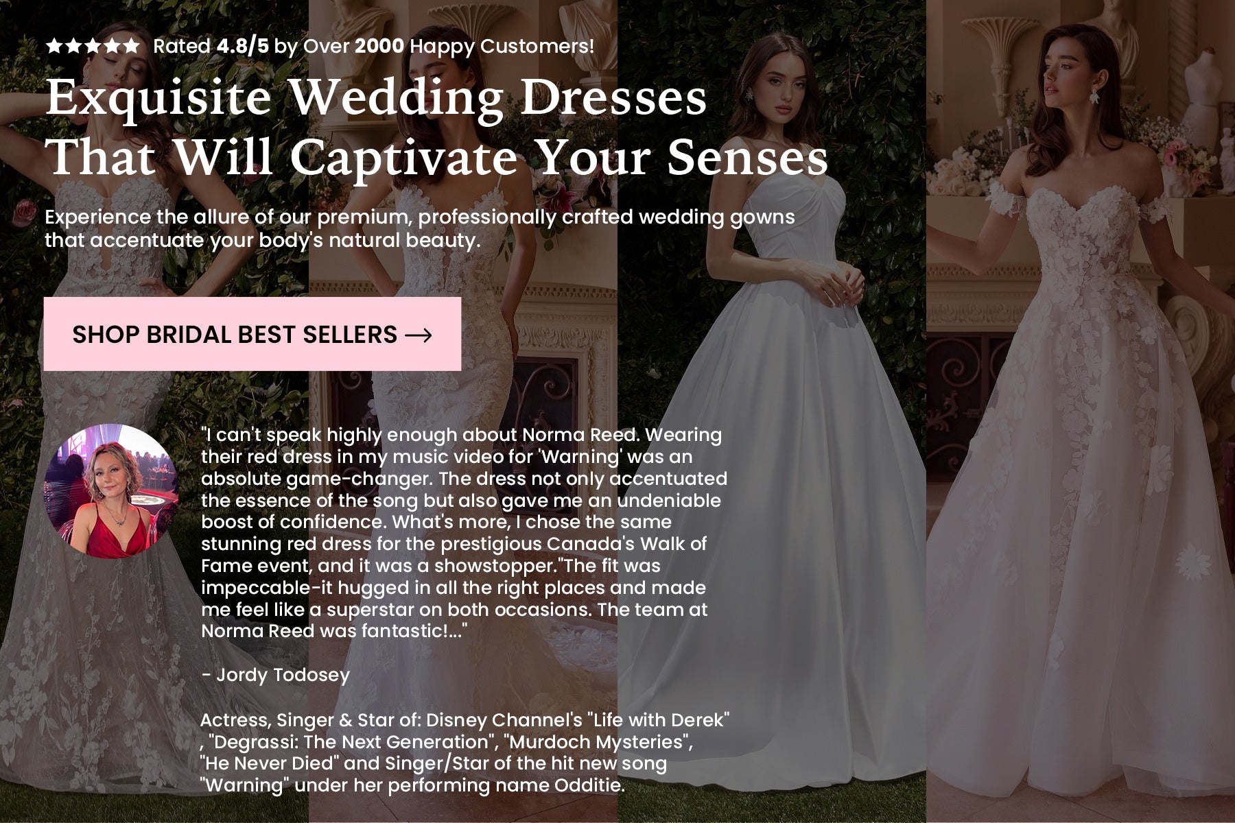 "I can't speak highly enough about Norma Reed. Wearing their red dress in my music video for 'Warning' was an absolute game-changer. The dress not only accentuated the essence of the song but also gave me an undeniable boost of confidence. What's more, I chose the same stunning red dress for the prestigious Canada's Walk of Fame event, and it was a showstopper...Thank you, Norma Reed, for not only providing exceptional clothing but for being a part of two memorable moments in my career. Your dresses are not just beautiful; they empower individuals to shine their brightest."